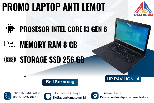Harga : Rp 3.450.000 HP PAVILION 14 , TYPE BARU BODY SLIM, PROSESOR AMD RY…
