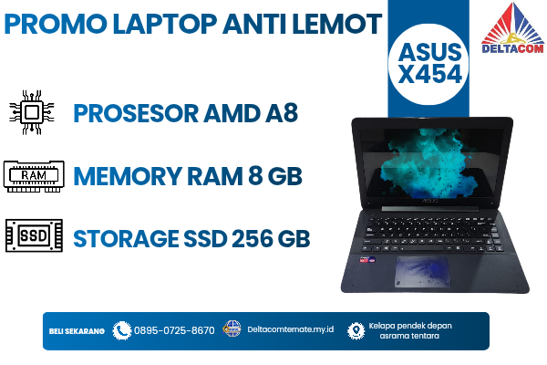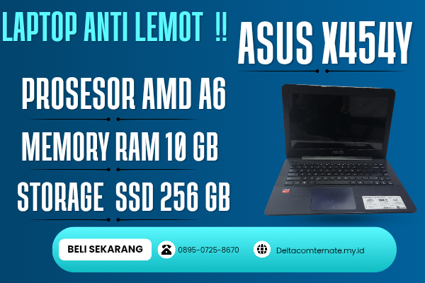 Harga : Rp 2.350.000 ASUS X454Y , TYPE BARU BODY SLIM, PROSESOR AMD A8 MEM…